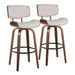 Lombardi - Mid-Century Modern Fixed Height Barstool With Swivel With Round Footrest (Set of 2) - Walnut / Cream