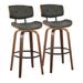 Lombardi - Mid-Century Modern Fixed Height Barstool With Swivel With Round Footrest (Set of 2) - Walnut / Gray