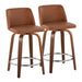 Toriano - Contemporary Fixed Height Counter Stool With Swivel With Round Footrest (Set of 2) - Walnut / Camel