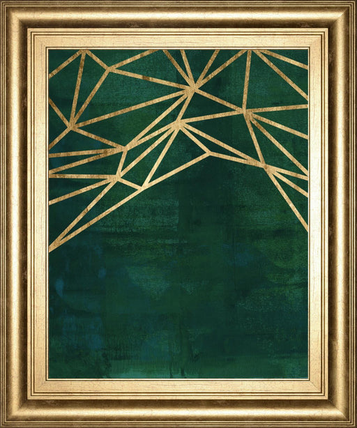 Classy LivingGolden Web captivates with its modern geometric design, where shimmering gold lines intricately weave over a rich, deep green background. This vert...