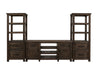 - Lightly distressed wood with a brown multi-step lacquer finish.