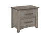 2 Drawer, Nightstand. The Ridge nightstand features two spacious drawers, offering plenty of storage for all your bedroom essentials. It features sleek metal handles that enhance its modern aesthetic. Made from Melina and poplar wood, this collection guarantees durability and timeless appeal. The elegant light gray finish and brown tops blend seamlessly with any décor style. Additionally, the channeled design adds a touch of sophistication and texture to the furniture.