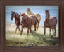 Step into a tranquil morning with this captivating scene of four horses gracefully moving through a sunlit meadow. The soft, diffused light and gentle mist create a serene atmosphere that invites calm and reflection. Framed in a warm cinnamon mocha finish, this piece brings a touch of natural elegance and peaceful countryside charm to any living room or office space. Crafted with premium materials and real glass, it is designed to enhance your decor with its timeless beauty and ready-to-hang convenience.