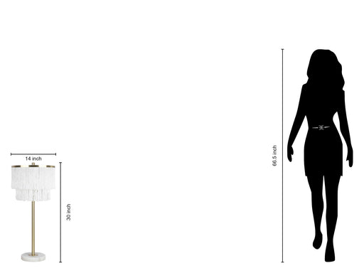 Classy LivingThe Tassel Elegance buffet lamp is a stunning addition to any sophisticated space. Its soft gold metal frame is complemented by a luxurious shade o...