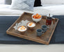 Serve up homey style with this tray. It’s a chic catch-all spot for your living room essentials when staged on an ottoman. Or place the tray on a coffee table as a beautiful base for decorative accents. With a honey brown hue and geometric wood pattern, it's an inviting and functional addition to your decor.
