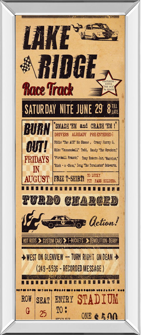 Classy LivingStep back into the golden era of racing with this captivating Lake Ridge Race Track poster. Its vintage-inspired design captures the raw excitement...