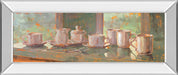 This tranquil still life painting invites you to pause and appreciate the quiet beauty of everyday moments. Featuring delicate cups, saucers, and a sugar pot rendered in soft green, muted orange, beige, and gray tones, the artwork exudes a gentle warmth that complements any kitchen or dining space. Encased in a sleek mirrored frame, the piece reflects light and adds a contemporary touch while preserving the intricate brushstrokes and subtle color variations under premium real glass. Perfect for adding a sophisticated, reflective elegance to your home, this art piece blends timeless charm with modern style.