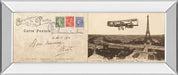Step back in time with this captivating framed wall art that beautifully merges vintage charm and historical intrigue. Featuring a sepia-toned postcard design, it showcases iconic Parisian landmarks alongside classic postage stamps, evoking the romance and nostalgia of early 20th-century travel. The mirrored frame adds a sleek, modern touch that enhances the depth and elegance of the piece, making it a perfect addition to living rooms, offices, or any travel-inspired space. Crafted with premium real glass and expert care, this artwork is ready to hang and bring a refined, timeless atmosphere to your décor.