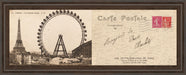 Step into a moment of vintage Parisian charm with this captivating artwork that blends the iconic Eiffel Tower and a grand Ferris wheel in a sepia-toned postcard style. The piece evokes a nostalgic journey through time, featuring handwritten script and authentic postage stamps that whisper stories of travel and romance. Encased in a warm cinnamon mocha frame with real glass, this horizontal wall art invites you to bring a touch of historic elegance and wanderlust into your living room or office, making every glance a reminder of the City of Light's enduring allure.
