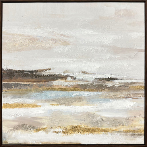 Original price $119.90 - Original price $119.90Original price$119.90$119.90 - $119.90Current price $119.90"Tranquil Horizon I" Hand-Embellished Canvas In Frame - Cream / Light Blue / Brown