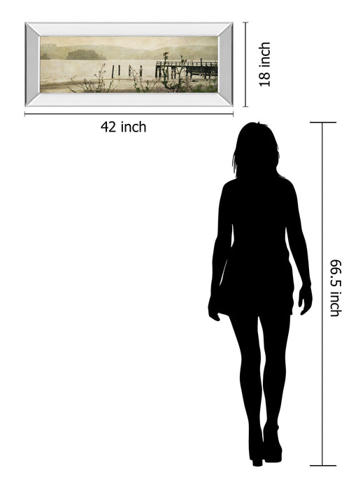 Classy LivingStep into a tranquil coastal moment with this captivating scene of a curved pier stretching into a misty horizon. The sleek mirrored frame adds a m...