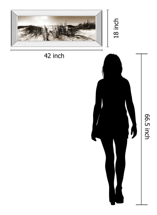 Classy LivingStep into a tranquil coastal scene with this panoramic wall art capturing the gentle dance of beach grasses across sunlit dunes. Rendered in a soot...