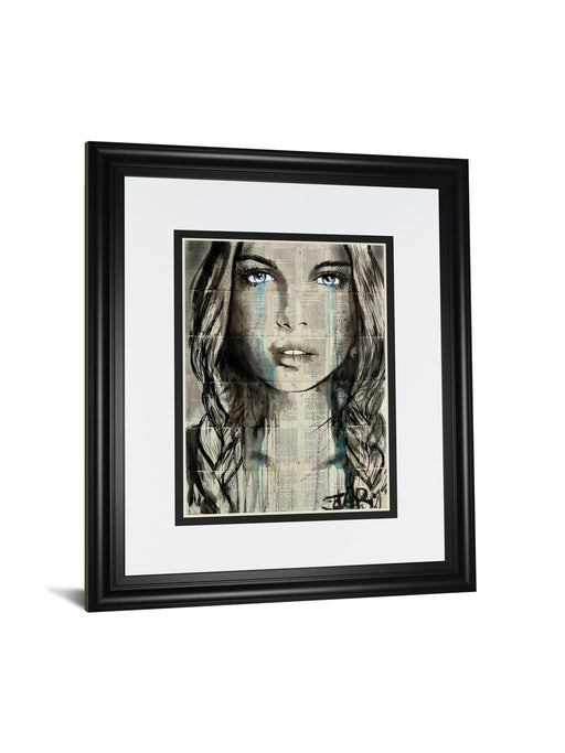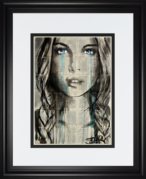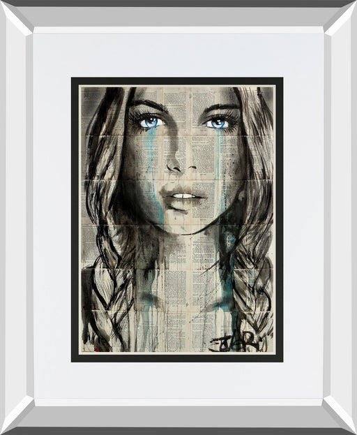 Classy Living“Blue Shore” presents a hauntingly beautiful portrait of a woman whose piercing blue eyes glisten with tears, rendered in mixed media over a backdr...