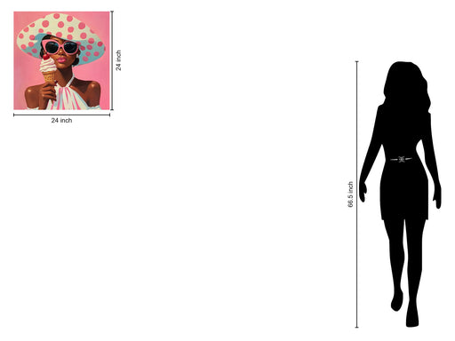 Classy Living"Ice Cream on Pink" is a vibrant hand-painted gloss canvas that captures a stylish woman enjoying an ice cream cone against a playful pink backdrop...