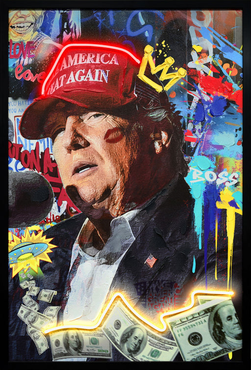 Classy LivingThis striking mixed media wall art combines hand-painted canvas with vibrant neon lighting to create a bold patriotic portrait. Featuring a powerfu...