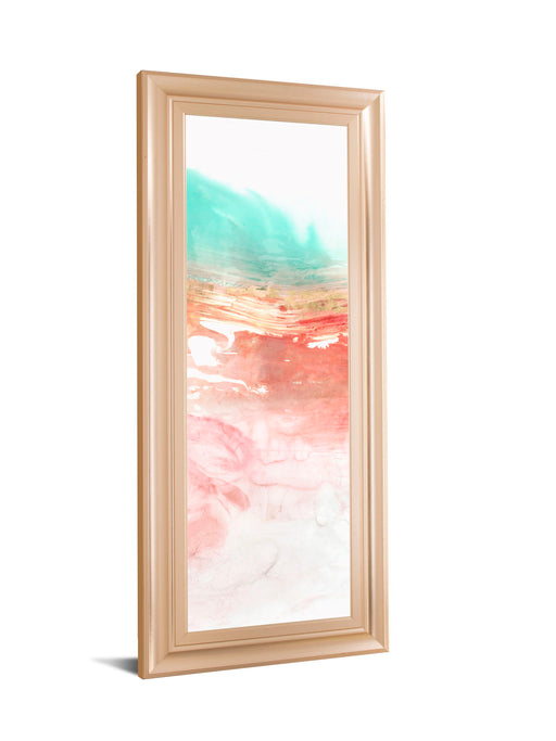 Classy LivingImmerse yourself in the tranquil blend of soft coral, teal, and shimmering gold with this captivating framed watercolor wall art. The delicate abst...
