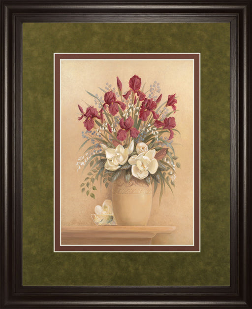 Classy LivingClassic Petal I captures the timeless beauty of a lush floral arrangement featuring deep red irises and creamy white magnolias resting elegantly in...