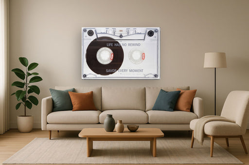 Classy LivingCapture the essence of nostalgia and motivation with "No Rewind Retro Cassette Inspiration," a contemporary graphic art piece printed on high-quali...