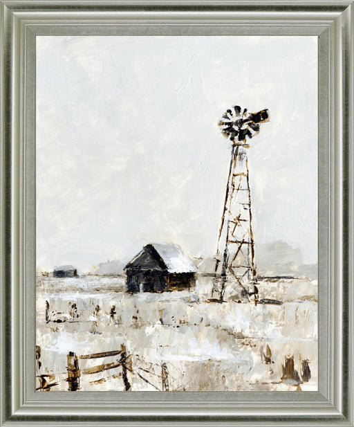 Classy LivingStep into a serene rural landscape with this captivating piece that beautifully portrays a rustic windmill and barn standing quietly amidst muted, ...
