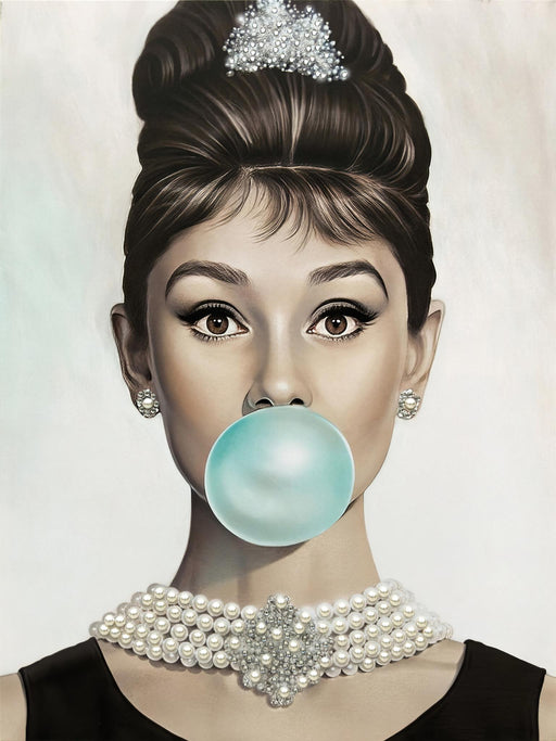 Classy Living“Chic Audrey in Blue Bubble” is a captivating hand-painted wrapped canvas that brings a modern gallery vibe to your living space. This striking por...