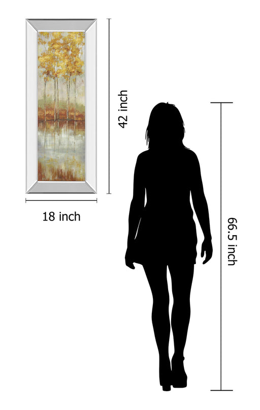 Classy LivingStep into a tranquil autumnal scene with this captivating framed wall art that showcases slender trees adorned with golden-yellow leaves reflected ...