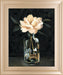 This evocative piece showcases a single creamy rose resting gracefully in a clear glass vase, set against a rich, dark background that enhances its delicate beauty. The soft petals and subtle green leaves create a serene, timeless scene that invites quiet reflection. Encased in a warm beige frame, this traditional botanical artwork brings a refined elegance to living rooms, bedrooms, or dining spaces, effortlessly blending classic charm with understated sophistication.