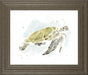 Discover the tranquil beauty of the ocean with this delicate watercolor depiction of a sea turtle gliding effortlessly through gentle waters. Painted in soft, earthy tones and subtle blues, the artwork captures the graceful movement and peaceful essence of marine life. Housed in a warm brown frame with real glass, this piece brings a soothing coastal charm to any living room, bedroom, or office, inviting a moment of calm and connection to nature's quiet wonders.
