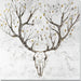 This captivating "Whispering Antlers Tree Branch Skull Canvas Art" merges nature and artistry in a stunning acrylic painting on high-quality canvas. The hand-painted design features a deer skull with antlers that grow into delicate tree branches adorned with golden leaves, symbolizing life and renewal. Its neutral palette of white, brown, and gold brings a serene yet striking presence to any living room, bedroom, or office. Ready to hang with professional mounting hardware, this frameless piece offers texture and depth through hand-applied accents, making each artwork truly unique. Beyond its beauty, your purchase helps provide meals to hungry American children, adding meaningful impact to your décor.
