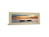 Step into a moment of serene beauty with this captivating coastal scene, where smooth rocks gently emerge from a calm sea beneath a stunning sunset sky. The soft blend of orange, blue, and neutral tones invites a peaceful ambiance, perfect for creating a calming retreat in your living room, bedroom, or office. Framed in a wide, elegant mirrored frame, this photographic artwork offers a sophisticated touch of nature’s tranquility, expertly crafted with real glass and ready to hang for effortless style and relaxation.