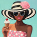 "Ice Cream on Teal" is a vibrant hand-painted gloss canvas that captures a stylish woman enjoying a sweet moment. Featuring a chic figure wearing a bold black-and-white striped hat adorned with a pink flower, and holding a delicious ice cream cone topped with a cherry, this contemporary piece radiates charm and sophistication. The high-gloss finish enhances the rich colors and textures, making it a standout addition to any living room, bedroom, or office. Ready to display with professional mounting hardware, this artwork brings warmth and personality to your space.