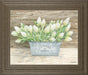 Experience the gentle charm of a blooming garden with this White Tulip Bouquet framed wall art. The delicate white tulips arranged in a rustic metal planter evoke a peaceful, natural elegance, set against a weathered wood backdrop that adds warmth and texture. Encased in a tranquil ash frame, this piece blends soft greens, whites, and earthy browns to create a serene focal point perfect for living rooms, bedrooms, or offices. Crafted with premium materials and crystal-clear glass, it offers lasting beauty and sophistication, ready to bring a touch of timeless botanical grace to your home.