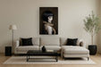 “Slithering” captures a striking portrait of a woman with a sleek black bob, her eyes adorned with shimmering gold makeup, and lips painted a deep red. A textured snake coils gracefully around her shoulders, its scales glistening with hand-applied accents that add depth and dimension. Set against a dark, patterned background, this high-gloss canvas photograph blends contemporary style with artistic sophistication. The gloss finish amplifies the vivid colors and intricate details, making it a captivating centerpiece for living rooms, bedrooms, or gallery spaces. Ready to hang with professional mounting hardware, this frameless piece offers a bold statement of elegance and intrigue.