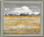 Step into a tranquil world with this captivating abstract landscape that blends shimmering golds with soft grays and muted earth tones. The artwork evokes the peaceful essence of a meadow beneath a cloudy sky, where delicate textures and subtle shimmer create depth and intrigue. Encased in a wide silver frame with real glass, this piece offers both elegance and protection, making it an ideal centerpiece for any living room or office seeking a refined touch of contemporary sophistication and serene beauty.