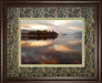 Step into a moment of peaceful reflection with this captivating lakeside scene at sunset. The gentle ripples mirror the soft autumn hues of the trees, creating a harmonious blend of earth tones and sky. Framed in a rich brown wood with a double mat in green and cream, this piece brings warmth and elegance to any living room, bedroom, or office. The premium real glass protects the vibrant photographic print, inviting you to pause and immerse yourself in the serene beauty of nature's quiet embrace.