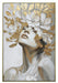 “Head in the Leaves” is a captivating hand-painted wrapped canvas that blends delicate human form with nature’s elegance. This contemporary mixed media piece features a serene woman adorned with golden leaves and soft white blossoms, creating a harmonious balance of texture and color. The gold frame enhances its luxurious appeal, making it a striking addition to living rooms or offices. Ready to hang with professional hardware, this artwork not only beautifies your space but also supports a meaningful cause by donating a meal to a hungry child with each purchase.
