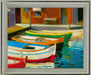 Step into a lively harbor scene with this vibrant depiction of colorful boats gently resting along a quiet canal. The artwork’s rich palette of reds, blues, greens, and yellows brings an inviting coastal charm to any space, while the elegant silver frame adds a refined touch that complements both modern and transitional interiors. Perfect for living rooms or offices, this framed piece captures the peaceful reflections and warm sunlight of waterfront life, inviting you to pause and enjoy a moment of serene beauty every day.