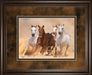 Experience the untamed spirit of the wild with this captivating scene of five horses charging through a swirling cloud of dust. Each horse, from the powerful chestnut to the graceful white, embodies strength, freedom, and motion, bringing energy and life to any room. The rich cinnamon mocha frame with double mats in warm browns and beige adds a refined touch, perfectly complementing the earthy tones of the artwork. Crafted with premium real glass, this piece offers vibrant color and sharp detail, while its ready-to-hang design ensures effortless display. Ideal for living rooms or offices, it transforms your space with rustic elegance and dynamic beauty.