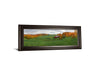 Step into the tranquil charm of the countryside with this captivating panoramic scene of a vibrant autumn farmstead. The rich tapestry of fall foliage in fiery reds, oranges, and yellows contrasts beautifully with the lush green rolling hills and classic red barns, evoking a sense of peace and nostalgia. Encased in a sophisticated dark chocolate frame with premium real glass, this artwork not only protects but elevates the vivid colors and intricate details, making it a perfect centerpiece for living rooms or offices. Crafted with expert care, this framed photograph invites you to bring the serene beauty of rural life into your home, offering a daily escape to nature's quiet splendor.