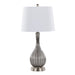- Elegant Design: The Jenny Table Lamp from Grandview Gallery by LumiSource features a stunning crackle glass body with metal accents and a tapered linen drum shade, adding a designer touch to any space.