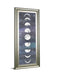 Step into the quiet wonder of the night sky with this stunning depiction of the moon's phases. Each stage is beautifully illustrated against a deep, starry backdrop in calming shades of blue, gray, and white, evoking the serene mystery of the cosmos. Encased in an elegant silver frame, this vertical artwork brings a touch of mid-century modern sophistication to any living room, office, or study, inviting you to explore the celestial rhythm that has inspired humanity for centuries. Crafted with premium materials and protected by clear glass, it’s ready to hang and designed to inspire reflection and tranquility in your space.