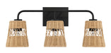 Moonlit - 3 Lights Wall Sconce With Shade, Bathroom Lighting Fixtures Over Mirror - Black / Rattan