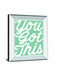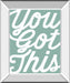 Embrace every day with confidence and encouragement through this inspiring framed wall art. Featuring bold, white typography that reads “You Got This” against a soothing muted teal backdrop, it brings a fresh, uplifting vibe to any space. The sleek 2.5-inch mirrored frame adds a touch of modern sophistication and reflective brilliance, enhancing the artwork’s presence while protecting it with premium real glass. Perfect for living rooms, bedrooms, or offices, this piece is designed to motivate and uplift, seamlessly blending contemporary style with powerful positivity. Expertly crafted and ready to hang, it’s an elegant reminder that you have the strength to overcome any challenge.
