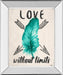 This striking piece, featuring a vibrant teal feather set against a soft beige background, carries a powerful message of boundless love. The bold typography and arrow accents add a touch of modern inspiration, while the sleek mirrored frame brings a refined elegance to any space. Perfectly suited for living rooms, offices, or bedrooms, this artwork is ready to hang and crafted to protect its vivid colors under crystal-clear glass, inviting you to embrace love without limits in your everyday surroundings.