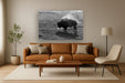 Capture the majestic presence of the buffalo in this striking black and white photograph printed on durable tempered glass. The high-definition image showcases the powerful silhouette of the buffalo against a textured natural backdrop, evoking a sense of strength and timeless beauty. Crafted with toughened glass for added safety and clarity, this piece offers a modern, sleek aesthetic perfect for living rooms, offices, or studies. Ready to hang with sawtooth hangers, it combines art and function while supporting a meaningful cause—each purchase donates a meal to a hungry American child.