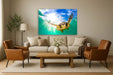 Dive into the serene beauty of ocean life with this striking "Sea Turtle" wall art. Crafted on tempered glass, this piece combines durability with elegance, showcasing a vibrant underwater scene where a majestic sea turtle glides gracefully beneath shimmering sunlight. The hand-embellished photograph is printed beneath the glass for a sleek, dimensional finish that adds depth and shine to any living room, bedroom, or beach house. Ready to hang with sawtooth hangers, it offers a clean, streamlined look while supporting a meaningful cause—a meal is donated to a hungry American child with every purchase. Bring the tranquil spirit of the sea into your home with this captivating contemporary artwork.
