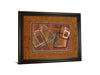Immerse yourself in the captivating world of abstract shapes with this framed wall art piece that blends earthy browns, warm oranges, and vibrant reds with striking turquoise and cream accents. The dynamic composition of overlapping geometric forms creates a sense of movement and depth, inviting the eye to explore every detail. Encased in a rich dark chocolate frame with double matting and premium real glass, this artwork offers a polished gallery-style finish that enhances its vivid colors and intricate design. Perfect for adding warmth and contemporary flair to your living room or office, this piece is ready to hang and crafted with quality materials to elevate any space.