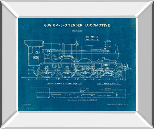 Original price $119.90 - Original price $119.90Original price$119.90$119.90 - $119.90Current price $119.90Locomotive Blueprint I By Wild Apple Portfolio - Mirror Framed Print Wall Art - Blue