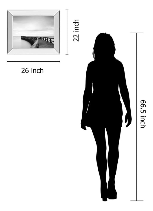 Classy LivingStep into a tranquil coastal moment with this captivating scene of a curved pier stretching into a misty horizon. The sleek mirrored frame adds a m...