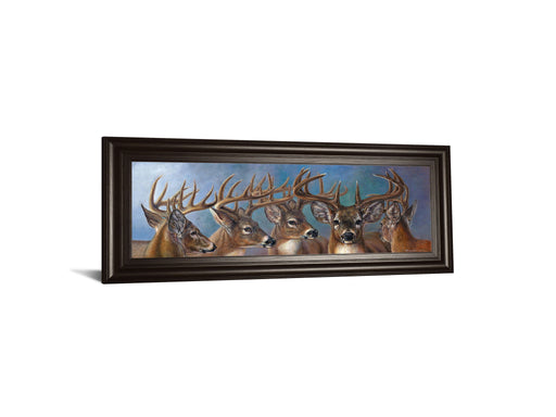 Classy LivingThis captivating oil painting showcases five magnificent male deer, each adorned with grand antlers, set against a tranquil blue and purple sky. Th...