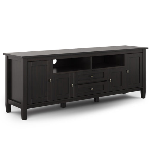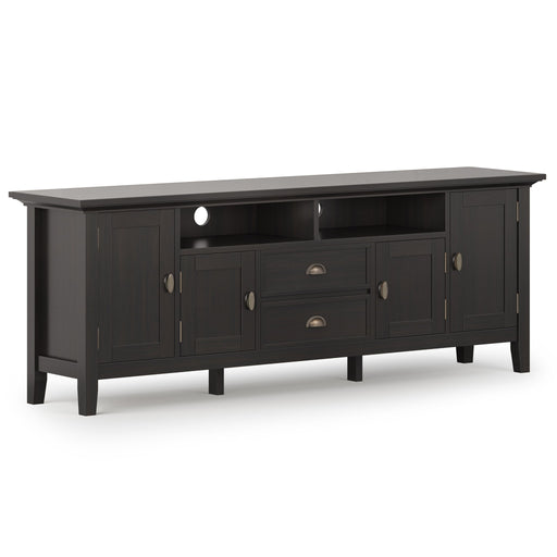 Simpli-HomeDIMENSIONS: 17" D x 72" W x 20" H Handcrafted with care using the finest quality solid wood Hand-finished in a Mahogany Brown stain and protective...